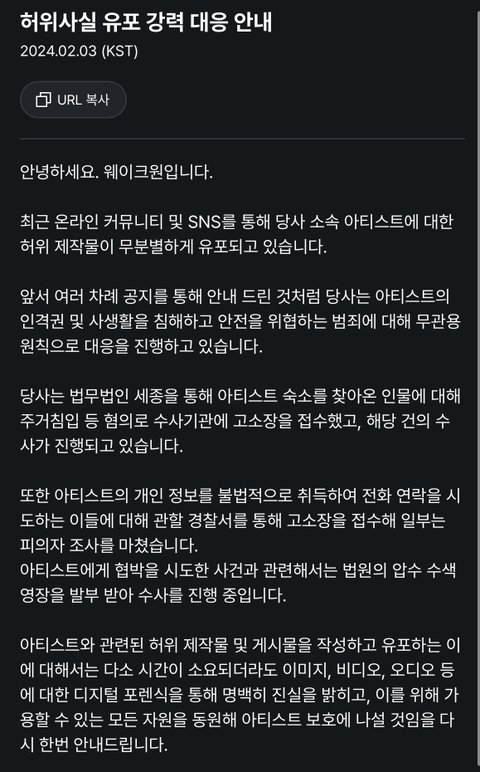 2/3 오전 2시 웨이크원 고소입장문