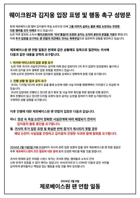 2/8 팬 연합 성명문