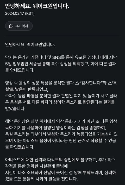 웨이크원 2차 입장문