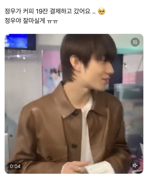 나 원래 연예인들 착해보이는 거 다 안믿고 만들어진 이미지라 생각하고 사는데 정우는 진짜 찐이라는 생각이 든다……예전부터 순하고 착한 성격인 것 같다는 느낌은 받았는데 오늘 자기 생일카페 실시간으로 돌아다니면서 팬들 마실 음료 미리 선결제 하고 가고있대…