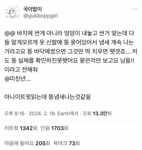 똥사태 현장 진짜 처참하긴한듯