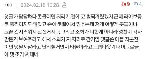 코 안쪽에 손가락이 들어간건지는 확실하게 모르겠지만 암튼 확실한건 소희한테 일부러 장난으로 묻힌건 아님 유튜브에 위버스 라방 올라와있으니까 내 말 안 믿기는사람은 보고와 17:54여기부분임