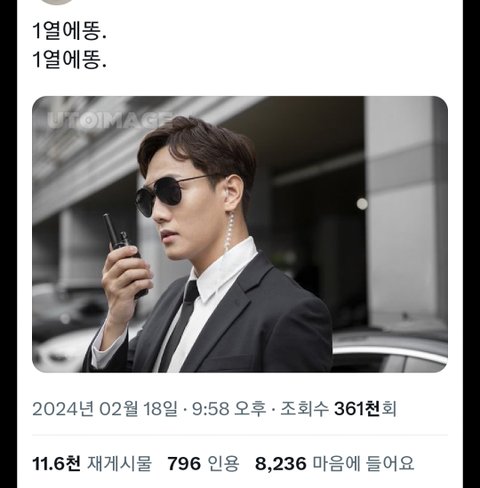 난 경호원이 1열에 똥. 1열에 똥. 1열에 똥.