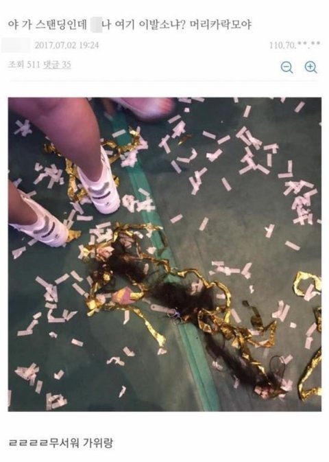 뒷사람이 안보인다고 똥머리한사람 머리카락을 잘라버린거임