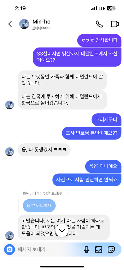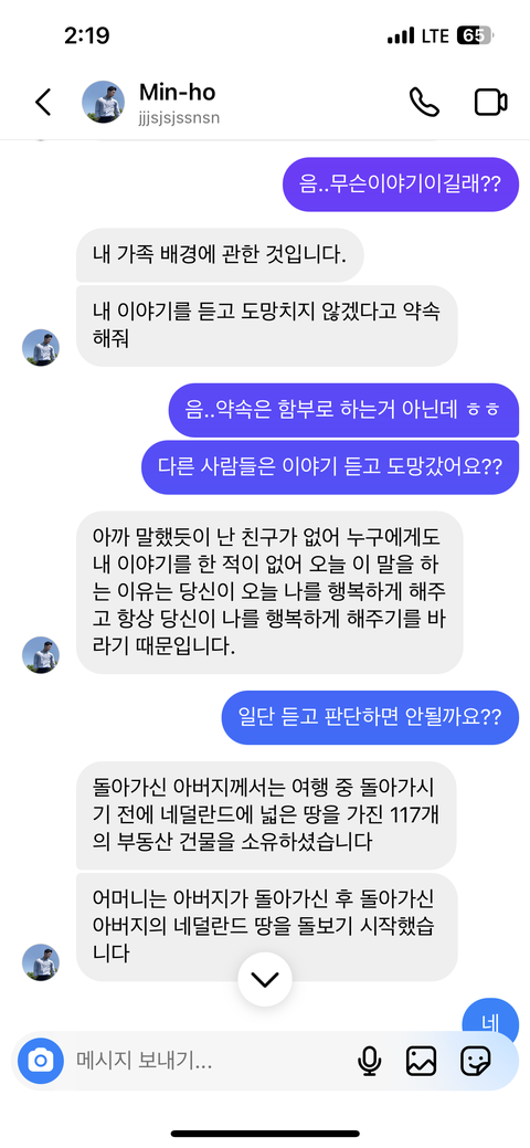그래서 디엠 수락 고민하다 뭐지 싶어 수락하고 이야기를
