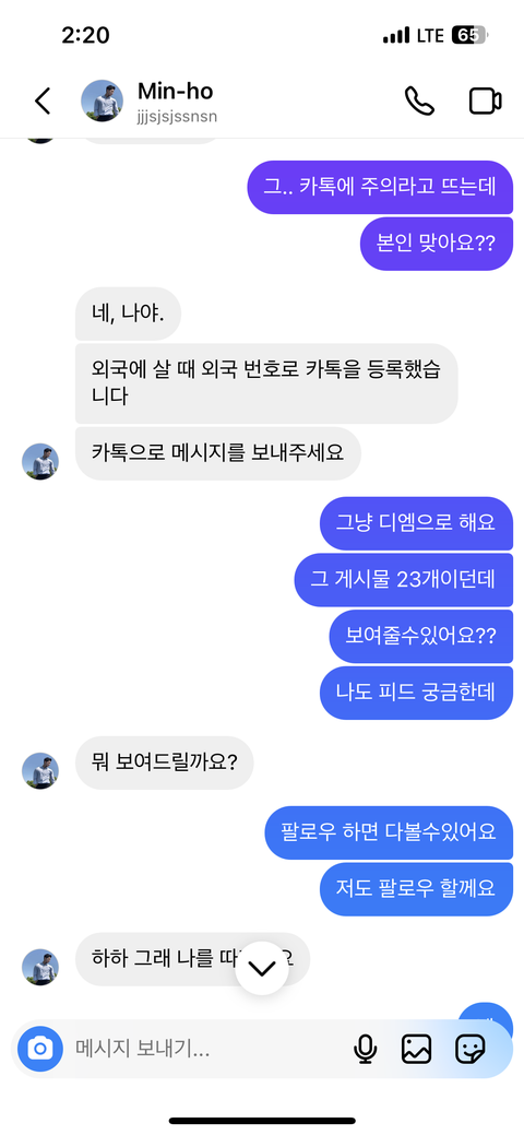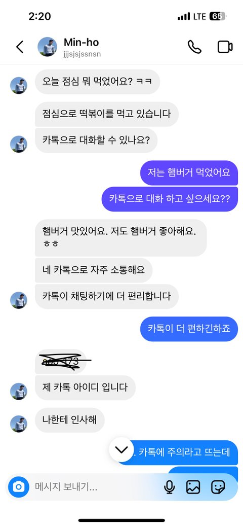 카톡으로 넘어가는 이야기하며 카톡 아이디를 주길래