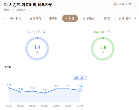 더 시즌즈 이효리의 레드카펫 시청률 추이