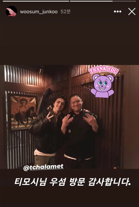한국와서 한우로 첫끼때린듯한 티모시 샬라메