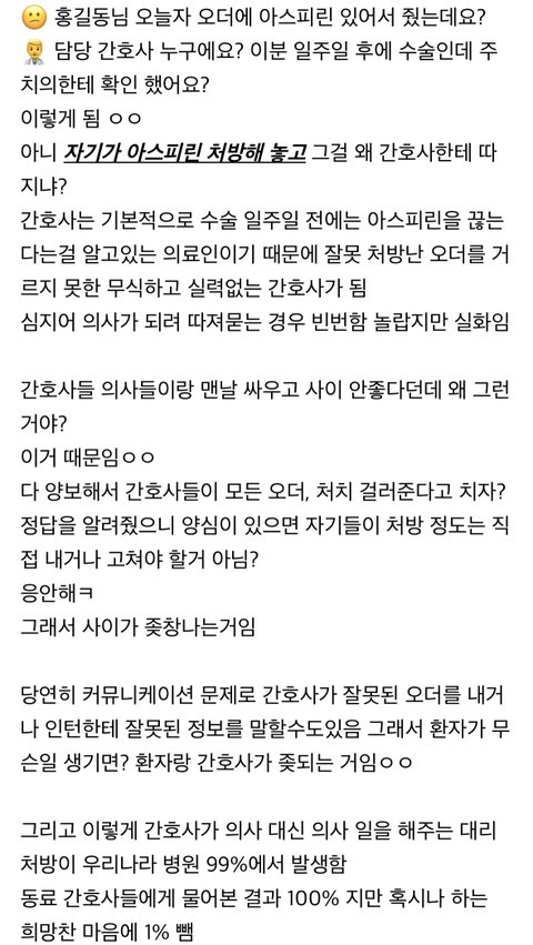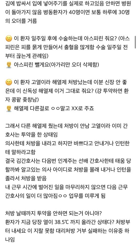 와.. 몰랐는데 그랬구나 의사가 잘못한거 간호사가 안빼면 독박으로 욕쳐먹는 구조였음? 의사들 완전 양아치네