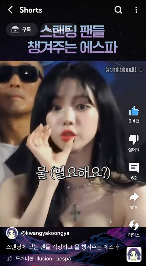 마이들 + 타팬덤들 스탠딩에 낑겨서 힘들어하니까 눈+입모양으로 소통해서 물 갖다 줌