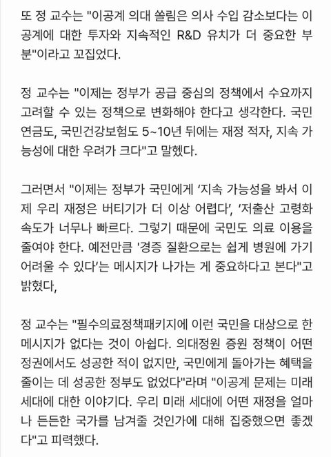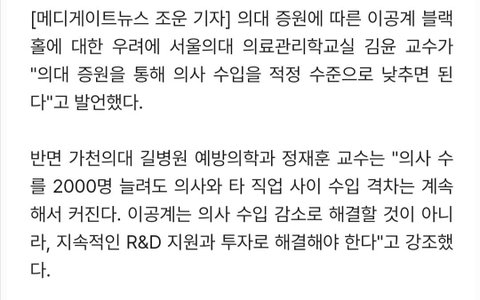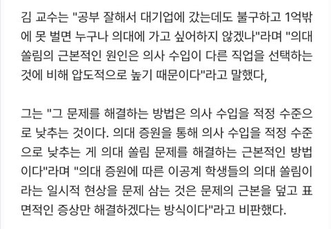 "의사 수입이 많아서 공대를 안 가니 의사 수입을 낮춰야 하므로 의사 수를 늘려야 의대 쏠림이 해결된다. "