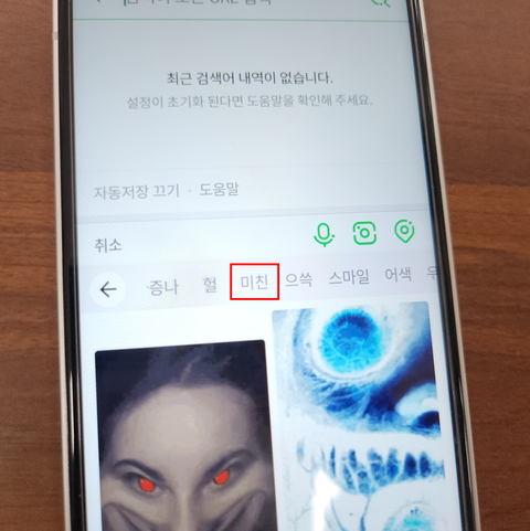 2. 키스, 미친, 무섭 이런 키워드가 아이가 검색하지 않아도 자동으로 노출되고 있어요.