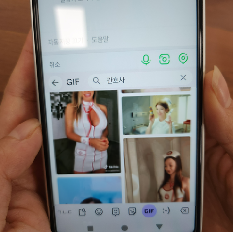 GIF에 검색 기능이 있는데, 설마설마 하고 몇가지 단어를 검색해보니 누가봐도 성인용에 적합한 영상물이 수십 수백가지 노출되고 있어요. 경찰, 간호사, 학생 등 다양한 코스튬 의상을 입은 여성들이 춤을 추거나 성적인 제스쳐를 하는 모습도 어렵지 않게 찾을 수 있구요. 아이가 설마 비키니 섹시 간호사 이런 걸 검색하겠어? 라고 생각할 수도 있는데, 이건 아이가 검색을 하고 안하고 문제가 아니라 애초에 저런 콘텐츠의 노출을 막으려고 산 키즈폰에 저런 기능이 탑재되어 있다는 게 문제라고 봐요.