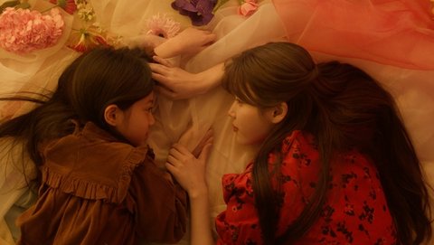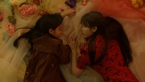딸과 아이유는 갇힌 탕웨이처럼 누워 서로를 보고 있다