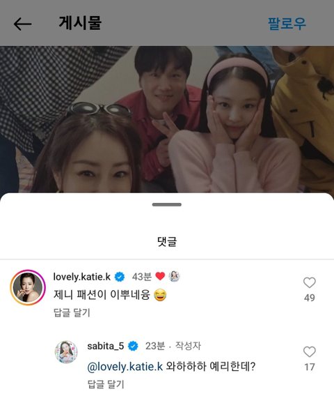 원조 핑크머리띠 김희선님 댓글 남기셨네
