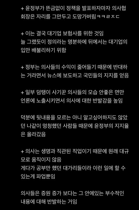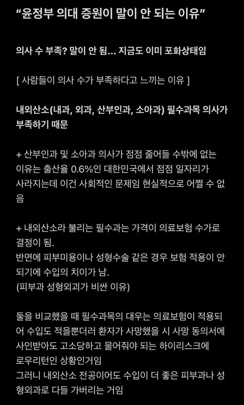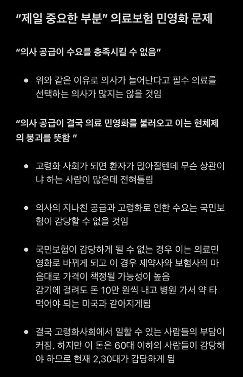 의대증원 되면 국가보험이 못견뎌서 의료 민영화되기 때문에 의사들이 단체로 움직인 건데 진짜 쉽게 적었으니까 한 번 봐줘…