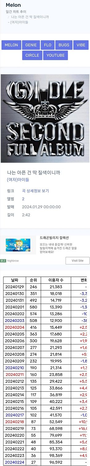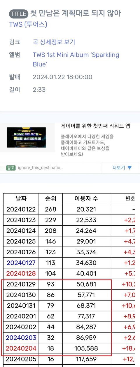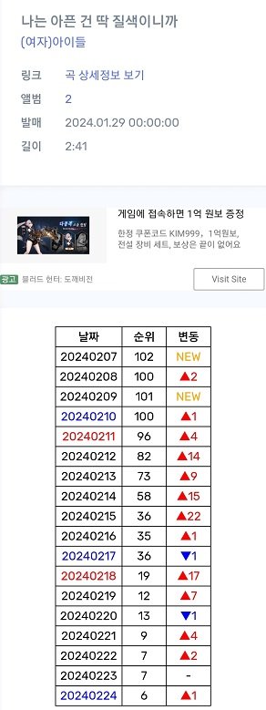 앞으로 이용자수도 더 팍팍 붙을거고 그럼 과연 어디까지 오를까 기대가 되는 곡일거야
