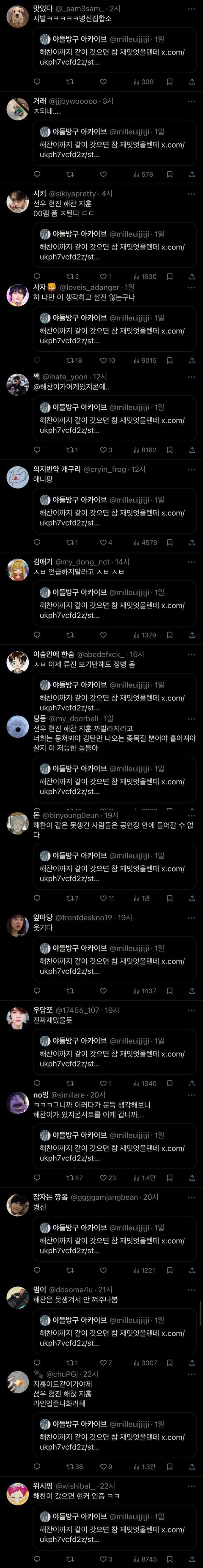 트위터는 얘 이미지 더 안좋네 있지콘은 현진이랑 덥선우가 간건데 가지도 않은 해찬까지 8천알티넘게 욕먹누ㅜㅜ