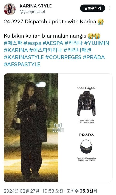 현시간 트위터 에스파 카리나 착장 계정