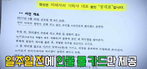 촬영 1주일 전에 본인이 맡은 캐릭터만 받는다고