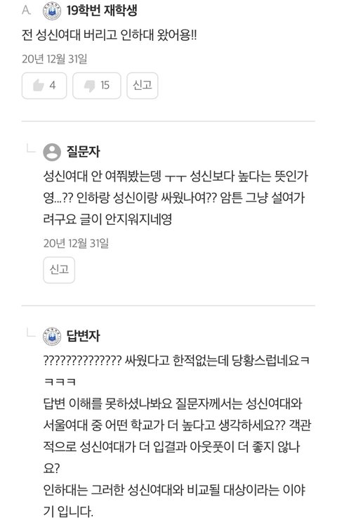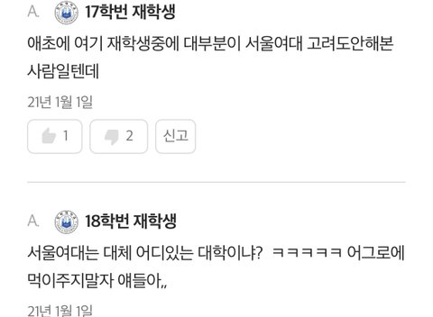 두 레벨이나 차이나는 인하를 어따 비비녜 숙대생이ㅋㅋ 삼여대 무시하더니ㅎㅎ(성신반응은 못찾음)