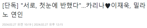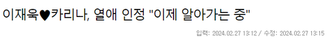27일 한 연예매체가 단독으로 보도한 에스파 카리나와 배우 이재욱의 열애설