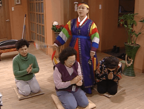 순재에게 비밀로 하는 대신 굿 하는걸 보기로 함