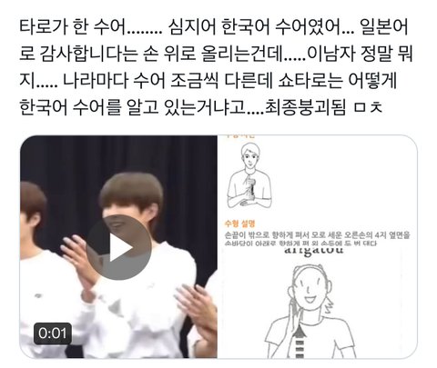 빅오션이라는 4월 데뷔예정 그룹이시라는데 라이즈랑 같이 챌린지했었음 청각장애를 가지신 멤버분도 있는 그룹으로아는데 타로 영상 마지막에 감사합니다를 수어로 하는거 보는데 너무 선하고 예쁨ㅠ 나는 이런거에서 상남자스러움을 느낀다 쇼타로 외유내강에 착하고 순해 저절로 눈과 마음이 따라감