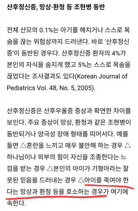 40-50대 아줌마인데 산후우울증 때문에 조현병 발현함