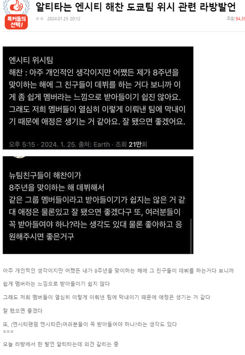 같은 회사 신인가수 우리 멤버같지않다 이딴소리로 저격하면서 편가르기하는게 상식적으로 가능한거냐?