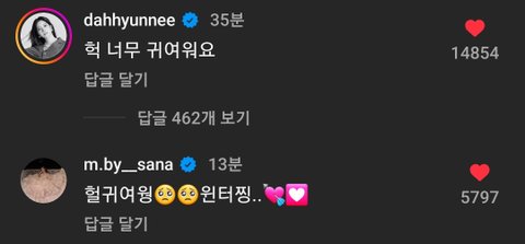 에스파 윈터 챌린지 댓글단 트와이스 사나 다현