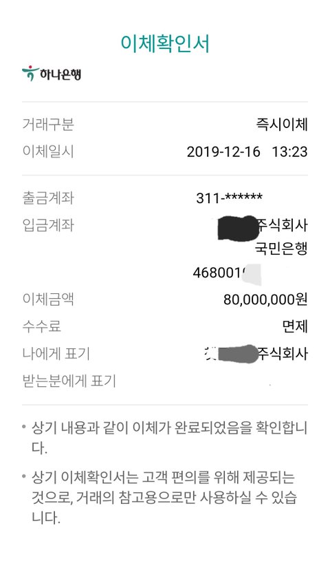 그쪽에서 보내준 계좌로 입금을 했습니다.