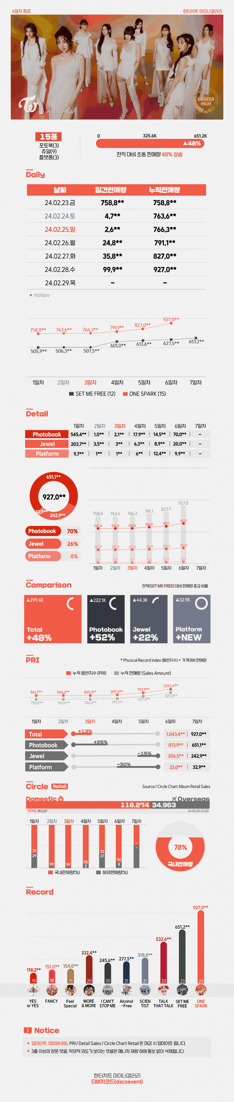 트와이스 "ONE SPARK" 초동 6일차 종료