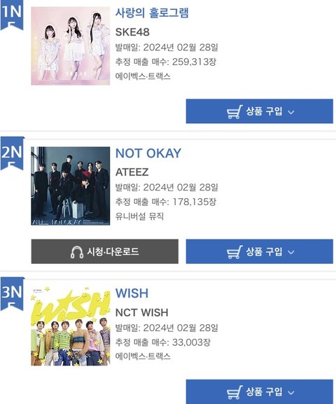 데뷔 싱글 초동 3만장;;; 같은날 에이티즈 17만장 터짐