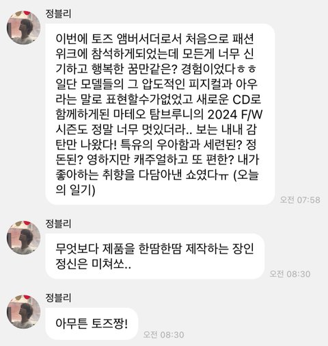 작년 토즈 앰버서더 선정 이후 처음으로 이번 패션위크 참석