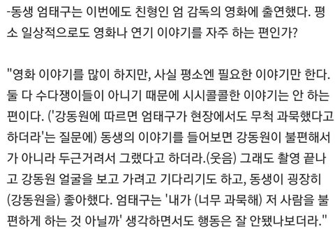 엄태구 말이 없다고 말 한적 있다곸ㅋㅋㅋㅋㅋㅋ