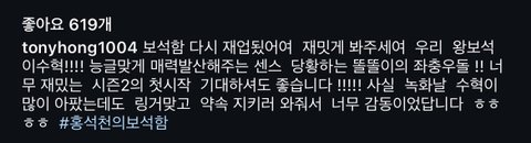 시즌1 때 출연 안했지만 SNS로 홍보도 해 준 이수혁