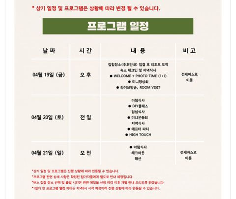 숙박비 식비 등등 다 포함이고 숙소는 4인 1실에 총 인원은 300명..ㅋㅋㅋㅋㅋㅋ