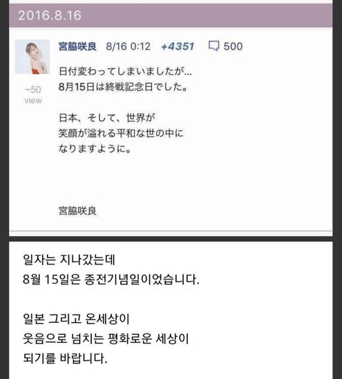 사쿠라는 일본 전범 미화 공연 섬╋종전기념일 발언╋정한론자 위인 발언 쓰리콤보인데... 사쿠라보다 심한 일본인 아이돌 없음