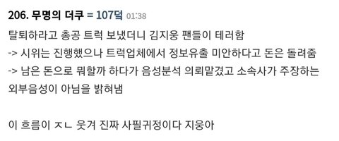 어휴씨웅이나 씨웅이팬들이나 진짜멍청해서 왜 일을 더 키워 ㅋㅋ 느그들이 니오빠 나락길 더 퍼내준건앎?