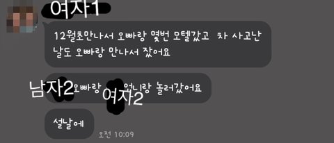 그이후에도 본인들끼리 밀회를 즐기면 3월달에도 부산여행 갈 계획을 짜둔 상황이었음 그걸 피해자1번이 다 확인하고 여자 1번 2번한테 다 듣고 피해자2번에게 연락해 다 오픈한상황에 피해자1번 sns 저격글 올리니 다들 뻔뻔하게 명예훼손으로 고소한다고 큰소리 치는중