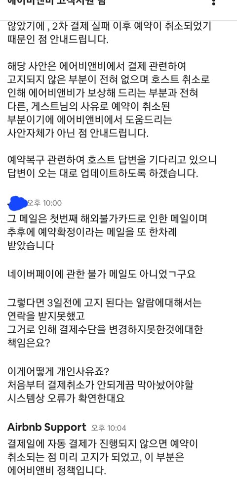 결제과정을 막지않은 에어비앤비 잘못인데