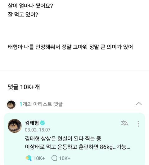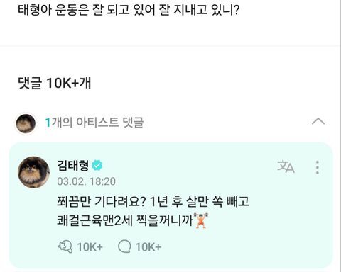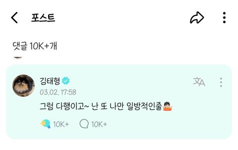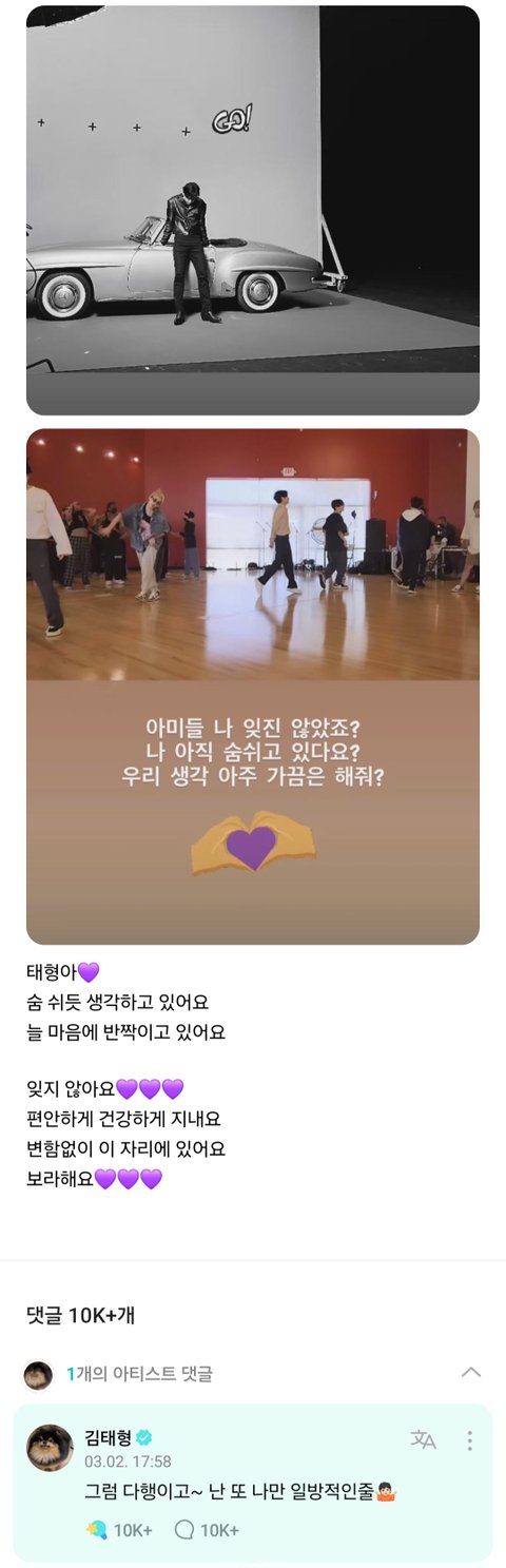 방탄 뷔 인스타랑 위버스 댓글 올라옴