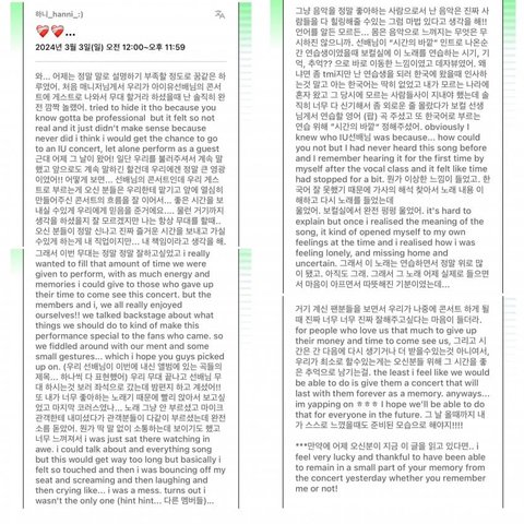 하니 항상 큰 행사나 스케줄하면 후기 엄청 길게남기는데 마음씨가 너무 이쁨