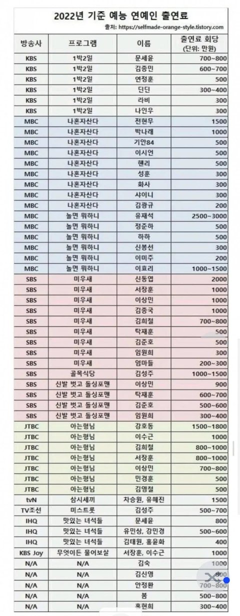 와 그럼 출연료 1000인 연예인은 10회만 찍어도 1억이 내손에?!ㅋㅋㅋㅋㅋㅋㅋ진짜 인생 쉽다 연예인은..