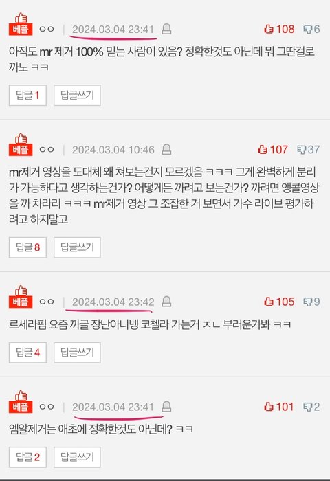 ㅋㅋㅋ같은 시간대에 갑자기 좋아요가 몇십개씩 확 오르고 정작 조금만 둘러봐도 댓글 여론이랑 정반대인거 개웃김ㅠ 얼마전 다른 게시글도 좀만 불리하다 싶으면 배댓 조작하던데 말투 비슷한것도 ㅈㄴ우습다ㅋㅋㅋㅋ 저 글이 릇 무작정 까는 글도 아닌데 그렇게 자격지심이 심해서야ㅠㅠㅠ 곧 여기도 몰려와서 베댓 조작하겠네ㅠ 정작 원글 여론은 정반대인데ㅠ