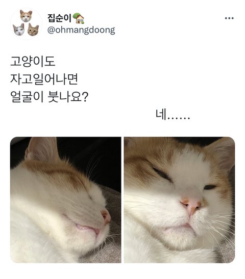 고양이도 자고일어나면 얼굴이 붓나요?