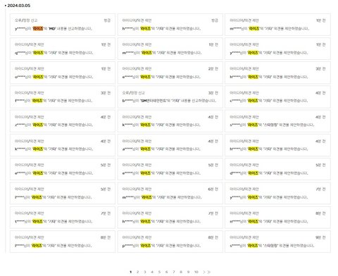 현재 SM 광야119 정정신고 & 의견제안 게시판 상황