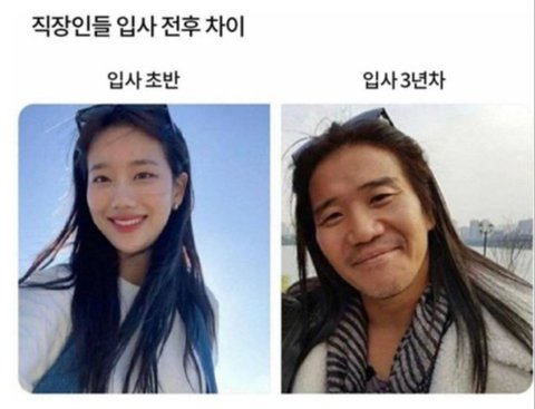 요즘은, 왼쪽이 입사 10년차, 오른쪽이 입사 1년차