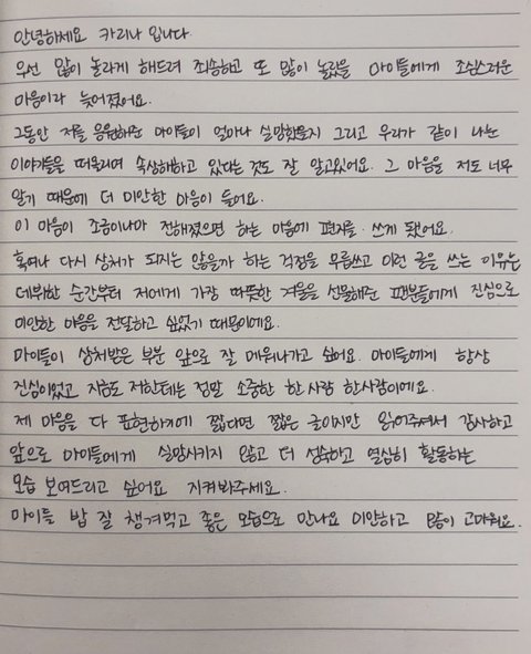 자필편지까지 쓰게하는건 진짜 에바임... 뭔 병크도 아닌데 ;;
